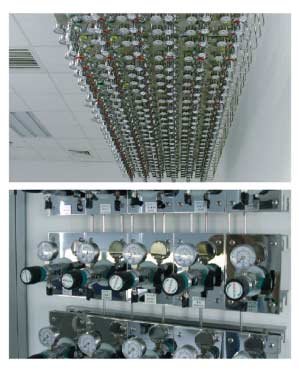 在現(xiàn)代化的實驗室中,為了完成實驗,需要用到多種分析儀器, 如氣相色譜儀,原子吸收,氣一質(zhì)聯(lián)用儀,ICP等等,其中這些 儀器需要用到高純氣體,傳統(tǒng)的做法是采用獨立鋼瓶分散供氣 的模式,這種供氣模式每臺儀器設備單獨配置氣體鋼瓶,分別 滿足每臺儀器設備的使用,但隨著近年來實驗室投資的不斷加 大,儀器設備的迅速增加,用氣量也逐年增加,傳統(tǒng)的供氣模式 已經(jīng)難以滿足儀器設備增加的需求,同時分散供氣模式帶來的 實驗室布局混亂,鋼瓶的頻繁更換也對實驗室的管理和維護造 成了困難,為了解決以上兩個方面的問題,就需要一套安全性 高且能實現(xiàn)集中分配供氣的系統(tǒng)完成從氣源向儀器的供氣這 就是實驗室高純氣體管道系統(tǒng)的功能所在。